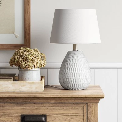 Add design and texture to your everyday lighting with this Large Ceramic Textured Table Lamp Base from Threshold™. This ceramic table lamp base makes a great addition to your indoor lighting. It features a textured base in a painted white finish to add a touch of design and fresh flair. The one-way light setting allows for easy operation so it’s simple to turn on and off. Just pair it with a large lamp shade to create a cozy and warm home setting.