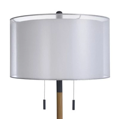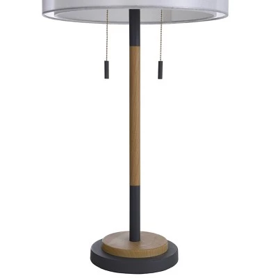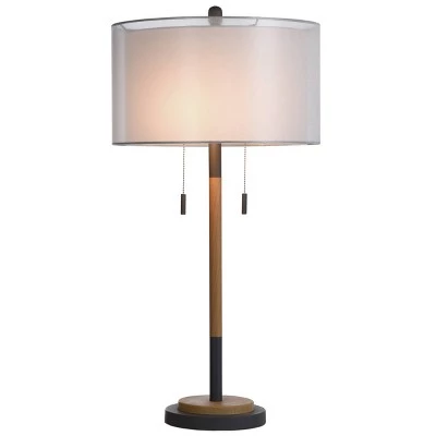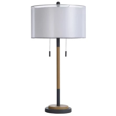 Accent your home décor with this table lamp from the Signature Collection by StyleCraft Home Collection. An industrial style table lamp with an appealing hint of naturalism. With its thin steel frame featuring a wood grain finish and a dark metal base, this modern fixture has an evocative look. The white sheer clear shade circles around two pull chains and includes a graceful accenting trim. This elegant industrial lamp brings an impressive aesthetic to dining rooms, living rooms and offices. It will pair well with industrial styling. Regardless if you put it in the bedroom or family room, this table lamp stands out. Suitable for residential use in a dry location. This modern table lamp is UL listed in compliance with the nationally recognized safety standards.