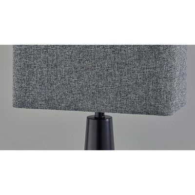 Add a warm, ambient source of cozy light to the beside the bed, sofa or reading area with the Lillian Table Lamp. This sleek table lamp style elevates any room with a touch of luxury and modernism. A black metal tapered base is paired with a dark gray rectangle shaped textured fabric shade with rounded corners, creating a soft, casual look. Turn the lamp on and off with a convenient switch on the socket. All Adesso lighting product is either UL or ETL listed, meaning that it has been tested and approved to meet the government-regulated safety standards for the USA. Bulb is not included.