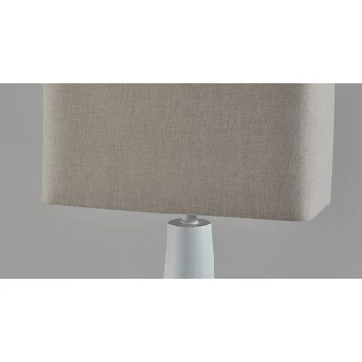 Add a warm, ambient source of cozy light to the beside the bed, sofa or reading area with the Lillian Table Lamp. This sleek table lamp style elevates any room with a touch of luxury and modernism. A white metal tapered base is paired with a taupe rectangle shaped fabric shade with rounded corners, creating a soft, casual look. Turn the lamp on and off with a convenient switch on the socket. All Adesso lighting product is either UL or ETL listed, meaning that it has been tested and approved to meet the government-regulated safety standards for the USA. Bulb is not included.