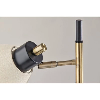 Brighten your space with the mid-century modern flare of the 22.5″ tall Matthew table lamp. With a geometric design that focuses on the simplicity of clean lines, the lamp is the perfect addition to desks, accent tables, and end tables. Featuring black metal finish contrasted with antique brass accents, the lamp has a 7″ diameter round base supporting a thin, tall pole. Attached to the pole by antique brass accent pieces is a cone-shaped shade made of cream textured fabric surrounding a 100W bulb (not included). The lamp is easily turned on or off with a rotary switch located on the shade and is powered by a 5′ black cord. Complete your dĂ©cor with the coordinating Matthew floor lamp and tree floor lamp.