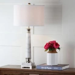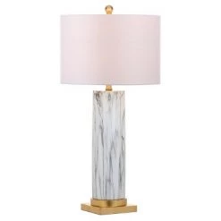 (Set of 2) 31.3" Sonia Faux Marble Table Lamp Black/White (Includes CFL Light Bulb) – Safavieh