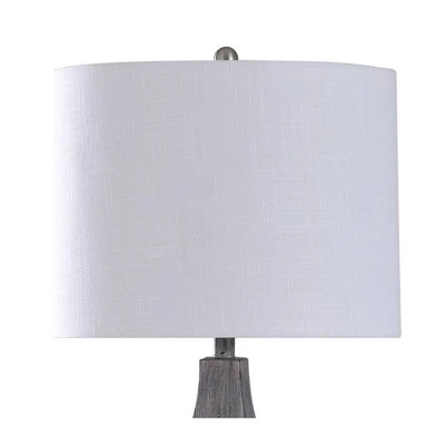 Showcasing contemporary style, the Pavesi table lamp has a simple white drum shade that highlights the rattan woven design in the center of polyresin body with its light mint gray finish and white washed details. The top and base are hand-finished in a detailed process that ensures no two pieces are identical. A silver metal finial completes the look, making this unique table lamp a striking addition to a family room or living room. This piece exemplifies superior product design and great styling. It will pair well with contemporary styling. Suitable for residential use in a dry location.
