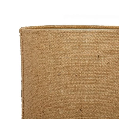 - Round lamp shape with a tall round drum shade and a jute weave patten