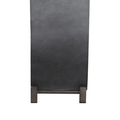 - Slate gray lamp base with a stone-like texture, a heather gray linen shade, and a dark gray iron footed base