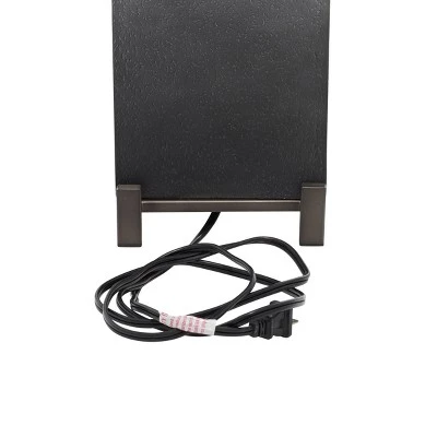Some lamps introduce bright, distracting colors and shapes to a room. This one has a refined, understated style that will still leave an impression. Its angular design looks great in a modern style living room, bedroom, or office. A gray colored body and shade are elegant and attractive without being too flashy. This handsome decorative lamp is 25″ tall and 15″ wide, so dedicate a space for it on the corner of a desk or end table. Designed with black rubber stoppers at the base that prevent scratching furniture and table tops, as well as sliding around. Uses one standard E26 light bulb (not included). Cord length measures 63″. Suitable for indoor use only. Rectangle lamp shade is made of Linen. Easy on/off twist switch under the shade. Modern theme. This item comes shipped in one carton.