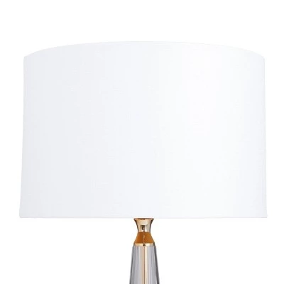- This table lamp highlights a bleached white drum shade with crystal and metallic gold accent finish