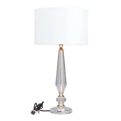 Add calm and soft lighting to your side or end tables with this buffet lamp with acrylic crystal base stand for a hint of elegance in your home corners. A practical yet stylish upgrade that instantly elevate the look of your room. Brighten up darker spaces in your home with this chic slender buffet lamp. Furnished with a socket for a medium-sized E26 bulb . This item comes shipped in one carton. Suitable for indoor use only. This item carries a drum shape linen shade. It conveniently turns on and off via a toggle switch. Traditional design.