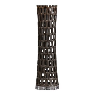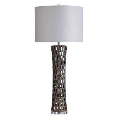 - Open Work Ceramic Column Table Lamp with Acrylic Base Gray Finish
