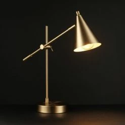 15" West Desk Lamp with Dimmer Rotary Switch (Includes LED Light Bulb) Matte Brass – Globe Electric