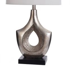 Contemporary Moulded Table Lamp with Hammered Hollow Center and Base Black/Silver – StyleCraft