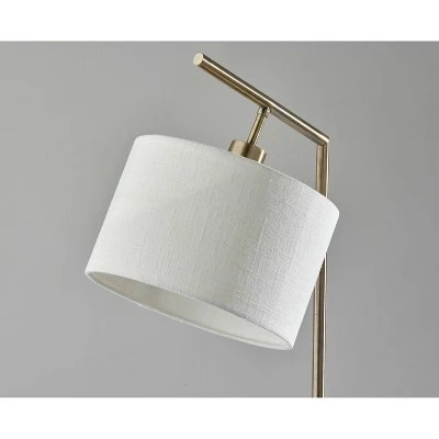 The Reynolds table lamp illuminates any space with its simple, geometric architecture that suits contemporary, mid-century modern, or industrial styles. At 25″ tall, this lamp fits perfectly on desks, nightstands, end tables, or accent tables. The lamp features a rectangular antique brass base supporting a thin, matching stem. The top of the stem angles to support a 10″ diameter x 6.5″ tall drum shade made of textured white fabric to softly diffuse the light from a 60W bulb (not included). Easily turn the lamp on or off with a rotary socket switch. Complete your space’s dĂ©cor with the coordinating Reynolds floor lamp.