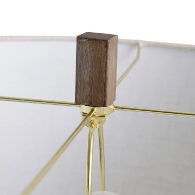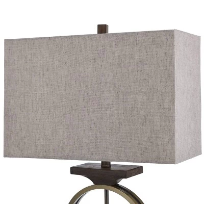 The contemporary Maconfield table lamp features a heather oatmeal linen shade over a brass ring-shaped frame with a light mint finish and dark wood-like accents. The intriguing shape of the base and the lamp’s unique production process ensure it is a one-of-a-kind accent piece. A three-way switch makes this brass and wood table lamp a stylish and functional addition to a family room or living room. This piece exemplifies superior product design and great styling. It will pair well with contemporary styling. If you put it in the bedroom or family room, this table lamp stands out. Suitable for residential use in a dry location.