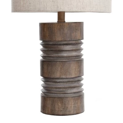 - Base of the lamp is designed with a ribbed design into the poly resin with a wood-like finish appearance