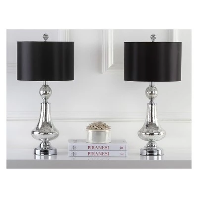 Hollywood glamour and debonair style were de rigueur in the days of Monroe, Gable and Grant and the Mercury Crackle Glass Table Lamp is a nod to this era of style and class. Crafted with crackled glass and topped with a black shade, it’s the belle of the ball. Its ivory and silver body add shine and glamour to the room and makes a great addition for modern and contemporary decor. These lamps are sold in a set of two.