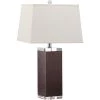 Strong geometric lines and an elegant base imbue the Safavieh Piper Set of Table Lamps with timeless art deco style. This gorgeous set of two lamps features sophisticated PU leather bases with silver chrome accents. Each lamp is finished with a rectangular white cotton shade and a ball finial Includes bulb and functions with a simple toggle switch. This table lamp by Safavieh is available in a variety of colors to best suit your personal tastes and decor.