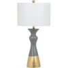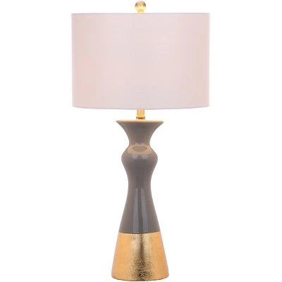 On a side street in Milan sits the design gallery whose iconic architectural lighting inspired this modern vintage table lamp (set of 2). Its decadent graphic style boasts a curvaceous geometry illuminated by a dramatic pairing of gray and gold. A designer favorite. The cool ceramic composition gives off effortless glamour that makes it great for modern, contemporary, or transitional style rooms. These table lamps by Safavieh are sold in a set of 2, has a rotary switch, a E26 bulb base, and comes with two CFL bulbs.