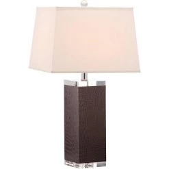 (Set of 2) 27.8" Joyce Faux Woven Leather Table Lamp (Includes CFL Light Bulb) Dark Green – Safavieh