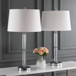 (Set of 2) 31.3" Sonia Faux Marble Table Lamp Black/White (Includes CFL Light Bulb) – Safavieh
