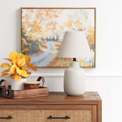 - Casual ceramic lamp adds lighting to any room