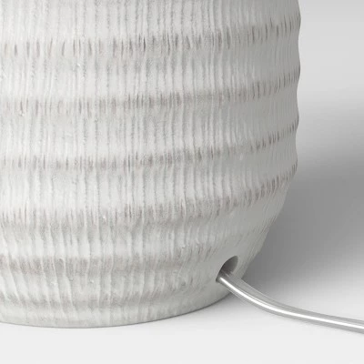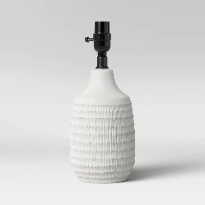 Add design and texture to your space with this Small White Textured Ceramic Lamp Base from Threshold™. This table lamp base makes a great complement to your indoor lighting. Made from ceramic, it features a chic raised design for a textured look, and a fresh white color that coordinates with any decor. This stylish lamp base comes with a simple on/off switch for effortless illumination. Plus, it’s compatible with small lampshades. Place it on a side table in your living room, lounge room or on the console table for endless display potential around your home.