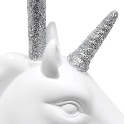 Add a touch of personality to your décor with this fun and exciting unicorn lamp! With a white resin base and touches of shimmering silver glitter this lamp is sure to illuminate any room in style. This lamp would be perfect for bedrooms, kids and teens, college dorms or nurseries!