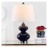 Illuminate your living room, bedroom or family room in style with this bold Table Lamp with white finial and brushed silver finish on its metal base and neck. Topped with a contemporary tapered pure cotton shade that illuminates the room. This table lamp by Safavieh is available in a variety of colors to best suit your personal tastes and decor. It has a rotary switch, a E26 bulb base type, and is sold in a set of 2.