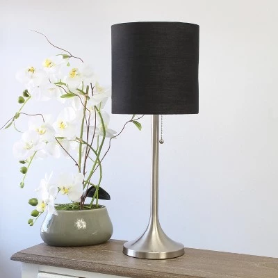 This fun and fashionable lamp desk/task features a brushed nickel metal base and black fabric drum shade making it the perfect addition to your lighting needs. This lamp will add simplicity and style to any space in your home. Perfect for bedrooms, kids and teens, college dorms, nurseries, or fun offices!