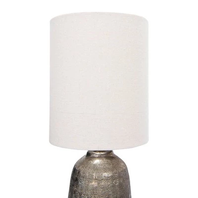 Add a fresh touch to the room décor with this terracotta table lamp. The shiny metallic base will delight as it complements the linen drum shade. Add it to a side, console or sofa table and lighten the whole room with its charm. The neutral tones allows this lamp to fit in with a variety of different styles of home décor.