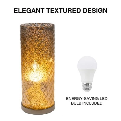 Add a touch of glamour and sophisticated style to any decor with the Lavish Home LED Uplight with Embossed Trellis Pattern. This luminary art is not only attractive, it also offers stunning enhancements to any room that can bring a new look to flat color schemes. Created with convenience in mind, this cylinder-shaped lamp comes already assembled with an included LED light bulb for easy set up. The uplight lamp can be used as an accent piece all around your home and looks excellent next to a mirror, styled bookcase, accent tables, or hallway consoles. It can also be displayed with small potted plants, photo frames or knick-knacks to add subtle color and soft illumination to achieve the perfect glow in any room.