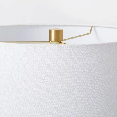 Brighten up your space in modern style with this Large Ceramic Jar Table Lamp from Threshold™ designed with Studio McGee. This table lamp includes a large pot-like ceramic base with two handles and a drum-shape shade. The gray ceramic base comes with a striped pattern that complements the white shade for an appealing look. Designed with a dimmable light setting, this ceramic table lamp helps you adjust the light according to your need — just place it in your reading nook or living room to create a beautiful setting.