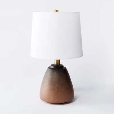 Lighten up your space in style with this Small Assembled Table Lamp from Threshold™ designed with Studio McGee. Featuring a ceramic base in a stylish ombre finish, this small table lamp is designed with a metal body and a drum-shaped lampshade for a combination of sleek style and timeless flair. Plus, the LED bulb with white drum shade and dimmable settings give your room a cozy ambiance and just the right amount of light for any time of day. Place this small lamp anywhere in your home — from the living room to your entryway console table — for an inviting glow that’s perfect for creating a welcoming atmosphere.
