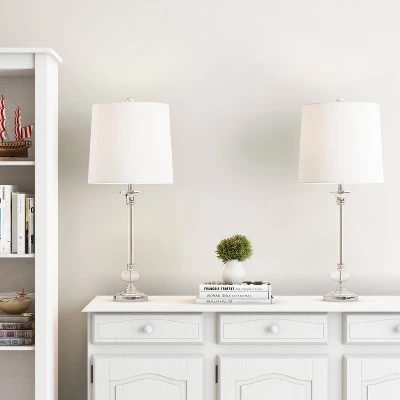 - Set of 2 table lamps with a candlestick body of clear crystal glass perfect for your living room, entryway, bedroom, or office