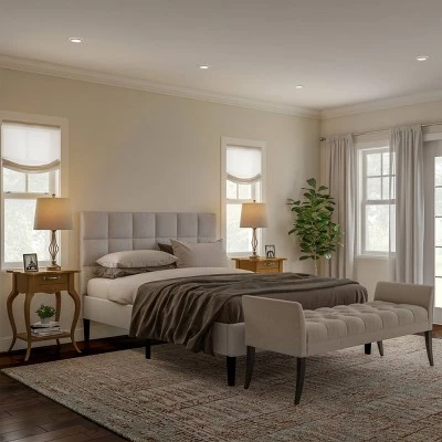 - The lamps are topped off with natural linen drum shaped fabric shades for a modern rustic style