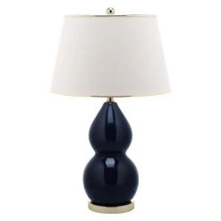 (Set of 2) 26.5" Jill Double- Gourd Ceramic Lamp Navy (Includes CFL Light Bulb) – Safavieh