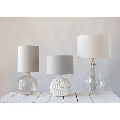 Make a statement with this attractive transparent glass table lamp. The tall drum shade adds dimension while the clear base allows visibility to items on the other side. Add it to a formal living room and pair with a few glass figurines nearby to create an elegant space that is sure to elevate the look of your entire home.