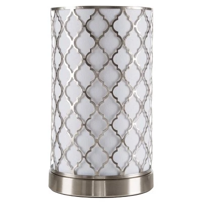 Add a touch of glamour and sophisticated style to any decor with the Lavish Home LED Uplight with Quatrefoil Pattern and Fabric Shade Sleeve. This luminary art is not only attractive, it also offers stunning enhancements to any room that can bring a new look to flat color schemes. Created with convenience in mind, this cylinder-shaped lamp comes already assembled with an included LED light bulb for easy set up. The uplight lamp can be used as an accent piece all around your home and looks excellent next to a mirror, styled bookcase, accent tables, or hallway consoles. It can also be displayed with small potted plants, photo frames or knick-knacks to add subtle color and soft illumination to achieve the perfect glow in any room.