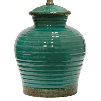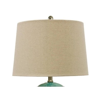There is a lot of beauty to be found in the Turquoise Ceramic Jug Table Lamp from the Signature Collection by StyleCraft Home Collection. The body, which comes with a turquoise finish, is adorned with a beige hardback linen shade. Place it on any table around your house, whether it is in your living room or bedroom. This will pair well with rustic and bohemian styling and is sure to be a conversation piece.