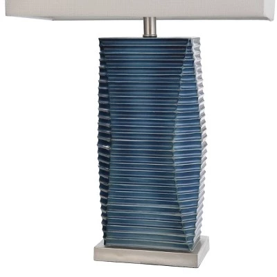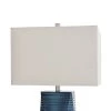 - Blue Vertical Lined Moulded Table Lamp with Steel Base Blue Finish