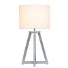 Add a touch of simplicity to your home with this contemporary style lamp. The soft and white fabric drum shade is what compliments the geometric gray wood base for a clean, simple contemporary look. This is the perfect lamp for a bedroom, living area, office, kid’s room or college dorm.